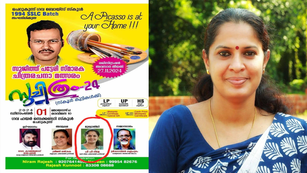 ഡിസംബർ ഒന്നിനാണ് സചിത്രം -24 എന്ന പേരിൽ മത്സരം നിശ്ചയിച്ചിരിക്കുന്നത്. പി. പി ദിവ്യയുടെ ഇരിണാവിലെ വീടിന് സമീപത്താണ് സ്കൂൾ. പോസ്റ്ററിൽ ദിവ്യയുടെ ഫോട്ടോയ്ക്ക് താഴെ മുൻ ജില്ലാ പഞ്ചായത്ത് പ്രസിഡന്റ് എന്ന് രേഖപ്പെടുത്തിയതിനാൽ പിപി ദിവ്യയുടെ അധിക്ഷേപത്തെ തുടർന്ന് കണ്ണൂർ എ ഡി എം നവീൻ ബാബു ജീവനൊടുക്കുന്നതിനു മുൻപ് നിശ്ചയിച്ച പരിപാടിയല്ലെന്ന് വ്യക്തം.