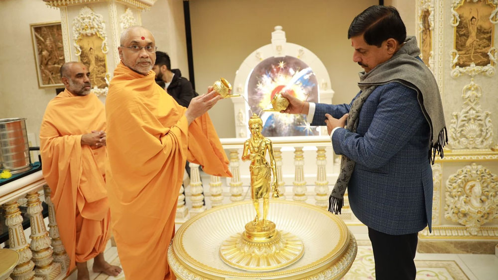ലണ്ടനിലെ ബാപ്സ് മന്ദിറിൽ ദർശനം നടത്തി മധ്യപ്രദേശ് മുഖ്യമന്ത്രി മോഹൻ യാദവ്. പ്രത്യേക പ്രാർത്ഥനകൾ നടത്തുകയും സന്യാസി സമൂഹവുമായി അദ്ദേഹം സംവദിക്കുകയും ചെയ്തു. ഹിന്ദു സനാതന ധർമത്തെ കുറിച്ചും അദ്ദേഹം പറഞ്ഞു.