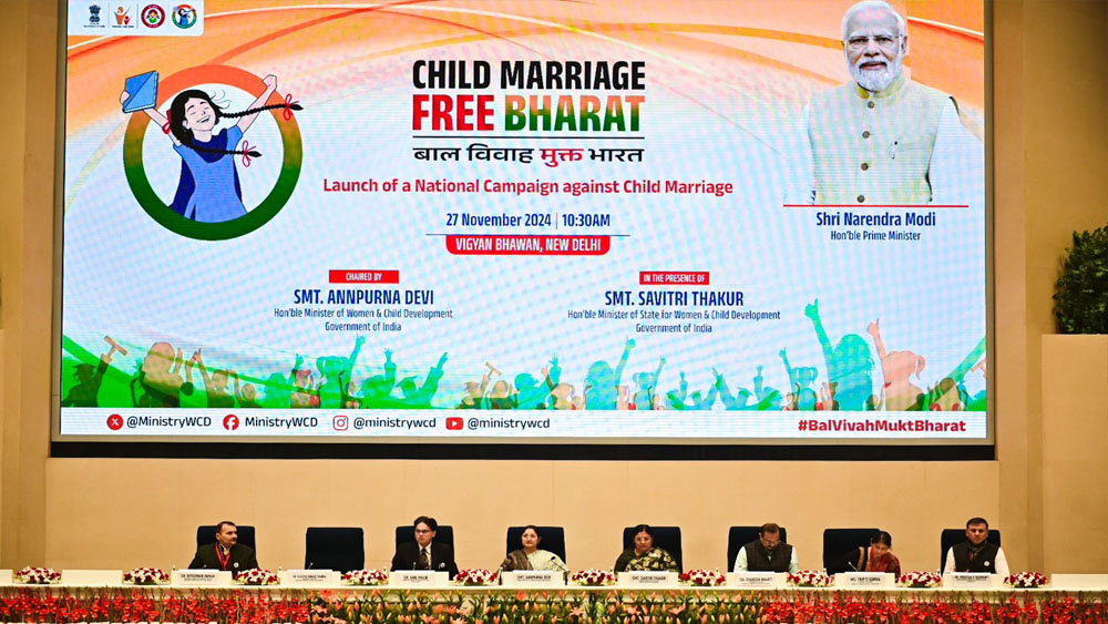ന്യൂഡൽഹി: കേന്ദ്ര വനിതാ-ശിശുക്ഷേമ മന്ത്രാലയത്തിന്റെ നേതൃത്വത്തിൽ ‘ബാലവിവാഹ മുക്ത ഭാരതം” ക്യാമ്പെയ്ന് തുടക്കം. ഇത് വെറും പ്രചാരണം മാത്രമല്ലെന്നും ശൈശവവിവാഹങ്ങൾ ഉന്മൂലനം ചെയ്യാനും രാജ്യത്തെ ഓരോ പെൺമക്കളേയും ശാക്തീകരിക്കുന്നതിന് വേണ്ടിയുള്ള ദൗത്യവുമാണെന്നും കേന്ദ്രമന്ത്രി അന്നപൂർണാ ദേവി പറഞ്ഞു. ശൈശവ വിവാഹങ്ങൾ സംഭവിക്കുകയാണെന്ന് അത് റിപ്പോർട്ട് ചെയ്യാനും പരാതികൾ സമർപ്പിക്കുന്നതിനുമായി ശൈശവ വിവാഹ രഹിത ഭാരത് പോർട്ടലും ആരംഭിച്ചിട്ടുണ്ട്.