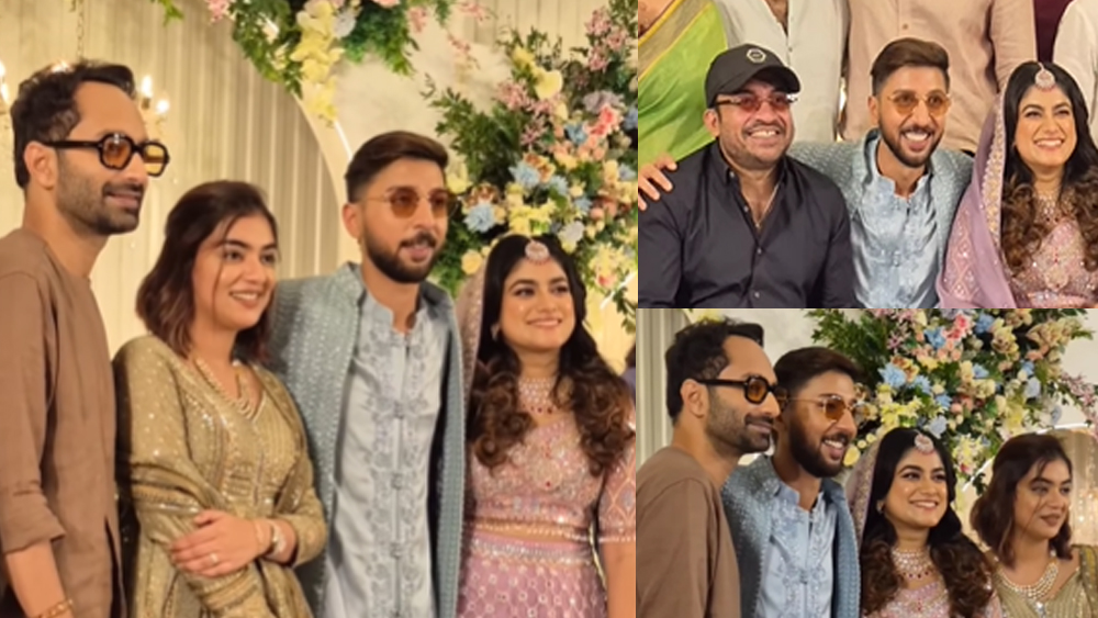 നസ്രിയയുടെ സഹോദരനും അമ്പിളി എന്ന സിനിമയിലെ നടനുമായ നവീൻ നസീമിന്റെ വിവാഹനിശ്ചയം നടന്നു. ബന്ധുക്കളും സുഹൃത്തുക്കളും മാത്രമാണ് വിവാഹനിശ്ചയത്തിൽ പങ്കെടുത്തത്. ഗോൾഡൻ നിറത്തിലുള്ള ജാക്കറ്റ് ചോളിയിൽ ലഹങ്ക ധരിച്ച് അതിസുന്ദരിയായാണ് നസ്രിയ ചടങ്ങിനെത്തിയത്. ചോക്ലേറ്റ് ബ്രൗൺ നിറത്തിലുള്ള കുർത്തയായിരുന്നു ഫഹദിന്റെ വേഷം.