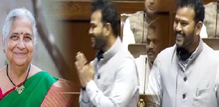 ബിൽ അവതരിപ്പിക്കുന്നതിനിടെ വെള്ളം ആവശ്യപ്പെട്ട് രാംമോഹൻ നായിഡു ; ഉടൻ കുടിവെള്ളവുമായെത്തി സുധാമൂർത്തി ; ‘ എന്റെ അമ്മയെ പോലെ ‘ എന്ന് മന്ത്രി