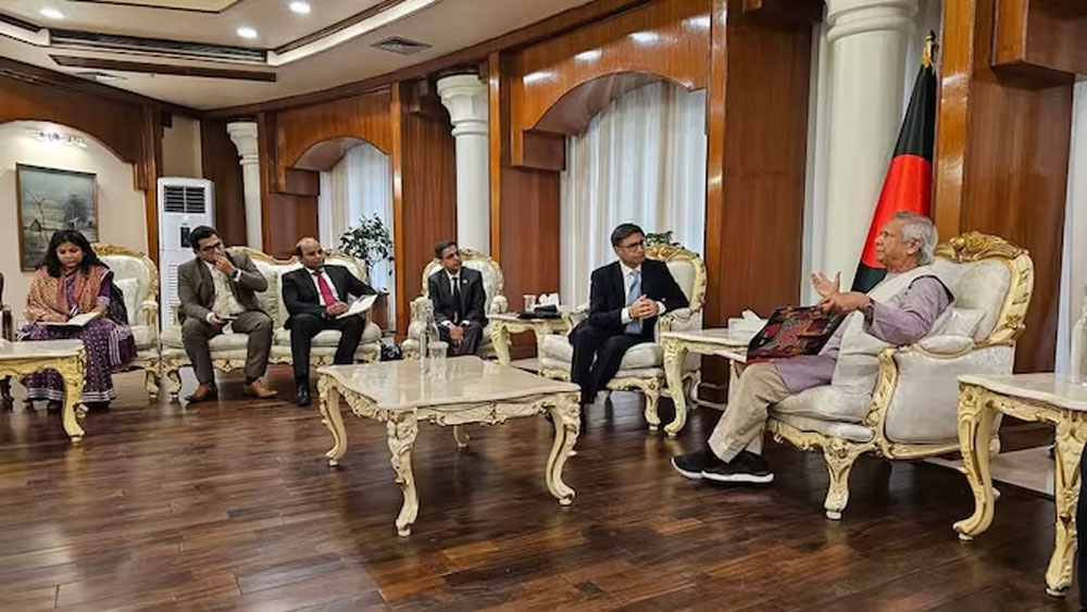 ” ഷെയ്ഖ് ഹസീന നടത്തുന്ന പ്രസ്താവനകളിൽ ഞങ്ങളുടെ രാജ്യത്തെ പൗരന്മാർ ആശങ്കയിലാണ്. കാരണം മറ്റൊരു രാജ്യത്തിരുന്ന് അവർ ബംഗ്ലാദേശിനെ വിമർശിക്കുകയാണ്. ഇത് പ്രശ്‌നങ്ങൾ സങ്കീർണമാക്കുന്നതിന് മാത്രമേ കാരണമാവുകയുള്ളു. ഇന്ത്യയുമായി എല്ലാ മേഖലയിലും ഉഭയകക്ഷി സഹകരണം മെച്ചപ്പെടുത്താനാണ് ആഗ്രഹിക്കുന്നത്. മത, ലിംഗ, വംശഭേദമന്യേ ഓരോ പൗരന്മാരേയും സംരക്ഷിക്കാനും അവരുടെ അവകാശങ്ങൾ ഉറപ്പാക്കാനും ബംഗ്ലാദേശിലെ ഈ സർക്കാർ പ്രതിജ്ഞാബദ്ധമാണ്. ഇത് ഒരു കുടുംബമാണ് ഒരുമിച്ച് തന്നെ മുന്നോട്ട് പോകുമെന്നും” മുഹമ്മദ് യൂനുസ് വിക്രം മിസ്രിയെ അറിയിച്ചു.