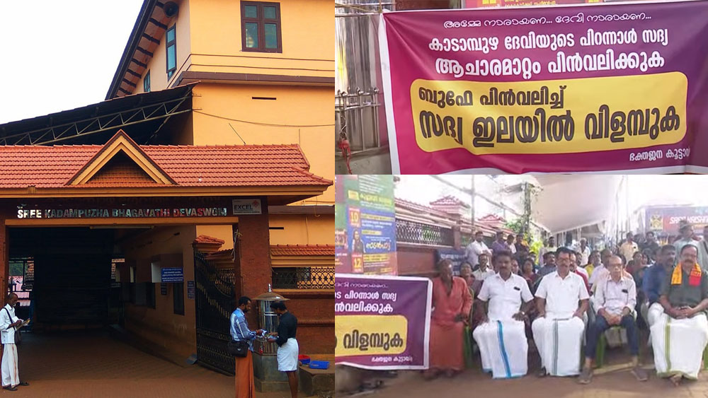 ഭക്തർ ഒറ്റക്കെട്ടായി പ്രതിഷേധിച്ചു, മുട്ടുമടക്കി മലബാർ ദേവസ്വം ബോർഡ്; കാടമ്പുഴ ഭ​ഗവതിയുടെ പിറന്നാൾ സദ്യ ഇലയിൽ തന്നെ