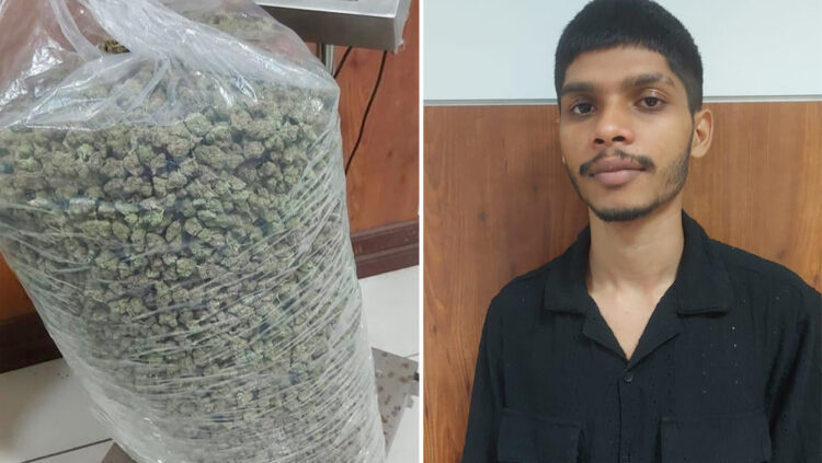 14.5 ഗ്രാം ഹൈബ്രിഡ് കഞ്ചാവാണ് ആമിലിൽ നിന്നും പിടികൂടിയത്. ഇയാൾ ലഹരി കടത്ത് സംഘത്തിലെ ഇടനിലക്കാരനാണെന്നാണ് വിവരം. ഒരു ലക്ഷം രൂപ പ്രതിഫലം വാഗ്ദാനം ചെയ്താണ് ഇയാൾ കഞ്ചാവ് കടത്തിനെത്തിയതെന്നാണ് പ്രാഥമിക നിഗമനം. കിഴക്കേഷ്യൻ രാജ്യങ്ങളിൽ നിന്നാണ് കൂടുതലായും ഹൈബ്രിഡ് കഞ്ചാവ് എത്തുന്നത്.