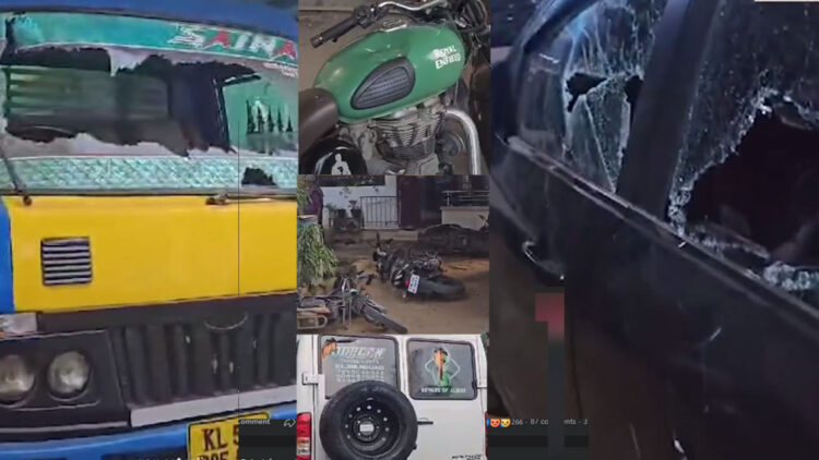 ട്രാവലറിന്റെയും കാറിന്റെയും ചില്ലുകൾ അടിച്ച് തകർത്ത നിലയിലാണ്. ബുള്ളറ്റ് ഉൾപ്പെടെ നാലോളം ഇരുചക്ര വാഹനങ്ങൾക്കും കേടുപാട് സംഭവിച്ചിട്ടുണ്ട്. ബൈക്കുകൾ തള്ളി താഴെയിട്ട നിലയിലാണ്. സംഭവത്തിൽ കോട്ടായി പോലീസ് അന്വേഷണം ആരംഭിച്ചിട്ടുണ്ട്.