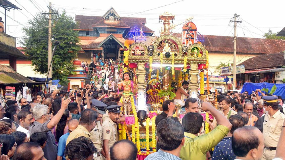 കോഴഞ്ചേരി, പാമ്പാടിമൺ അയ്യപ്പക്ഷേത്രം, ഇലന്തൂർ ഭഗവതികുന്ന ദേവീക്ഷേത്രം, മഹാഗണപതി ക്ഷേത്രം വഴി ശ്രീനാരായണമംഗലം ധർമശാസ്താ ക്ഷേത്രത്തിൽ എത്തും. ഇവിടെ നിന്ന് അയത്തിൽ, മെഴുവേലി, ഇലവുംതിട്ട, പ്രക്കാനം വഴി ചീക്കനാൽ എത്തും. ഇവിടെ നിന്ന് വാദ്യമേളങ്ങളുടെ അകമ്പടിയോടെയാണ് ഓമല്ലൂർ ക്ഷേത്രത്തിലെത്തുക.