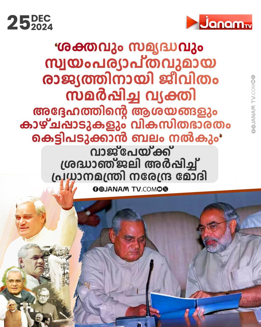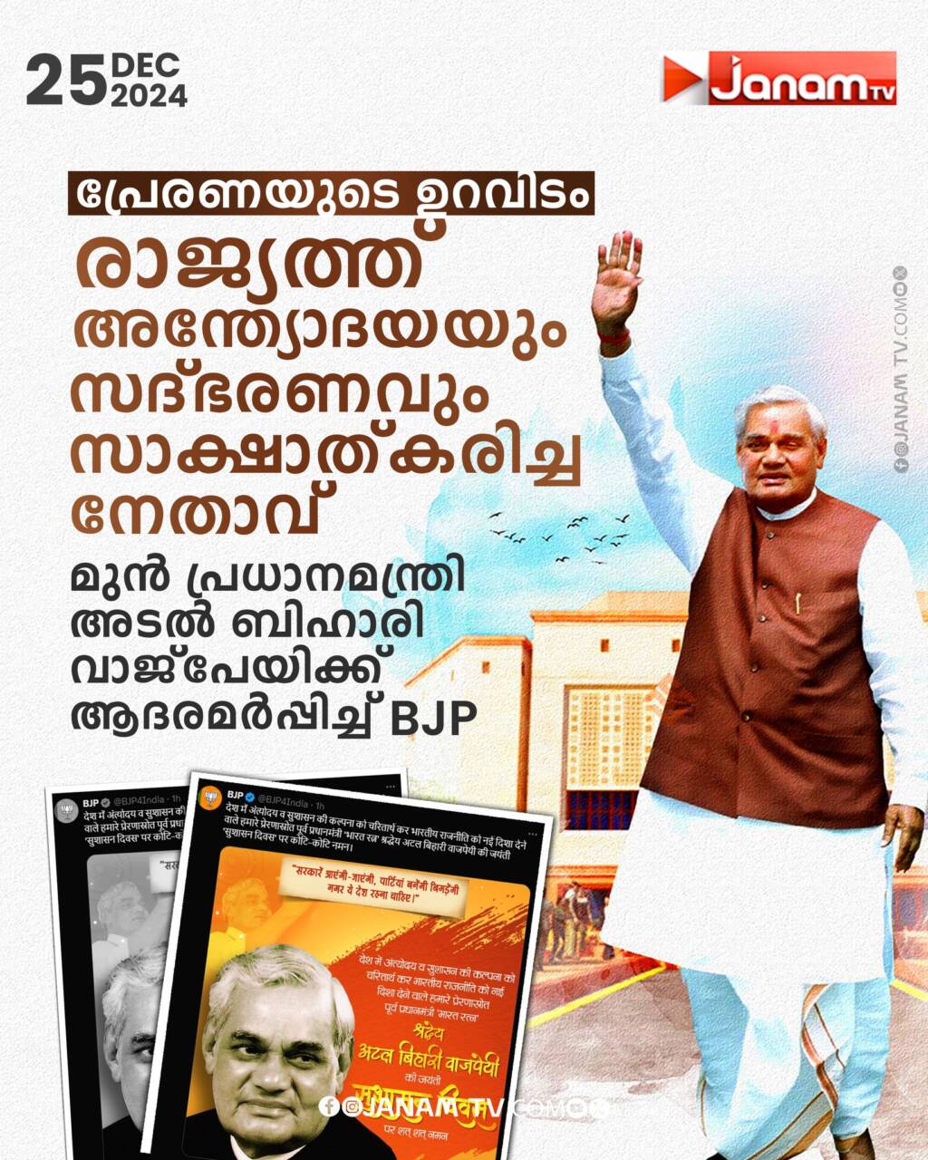 ന്യൂഡൽഹി: മുൻ പ്രധാനമന്ത്രിയും ഭാരതരത്നയുമായ അടൽ ബിഹാരി വാജ്പേയിയുടെ ജന്മദിനമായ ഇന്ന് രാജ്യം സുശാസൻ ദിവസ് അഥവാ Good Governance Day ആയി ആചരിക്കുന്നു.