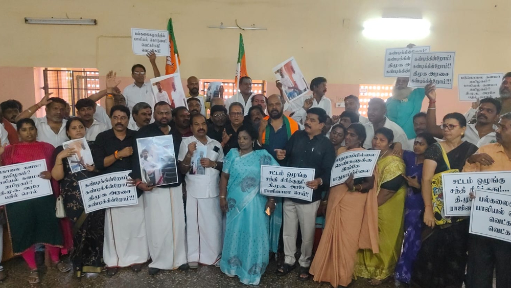 കാമ്പസിനുള്ളിൽ പോലും പെൺകുട്ടികൾ പീഡിപ്പിക്കപ്പെടുകയാണെന്ന് തമിഴ്‌നാട് ബിജെപി അദ്ധ്യക്ഷൻ കെ അണ്ണാമലൈ ചൂണ്ടിക്കാട്ടി. തമിഴ്‌നാട് സ്ത്രീകൾക്ക് സുരക്ഷിതമല്ലാത്ത നാടായി മാറിയെന്നും അണ്ണാമലൈ ആരോപിച്ചു. വള്ളുവർകോട്ടത്ത് രാവിലെ 10 മണിയോടെയാണ് മുൻ ഗവർണറും ബിജെപി മുൻ സംസ്ഥാന അദ്ധ്യക്ഷയുമായ തമിഴിസൈ സൗന്ദരരാജന്റെ നേതൃത്വത്തിൽ വനിതകൾ ഉൾപ്പെടെയുള്ള പ്രവർത്തകർ പ്രതിഷേധവുമായി രംഗത്തെത്തിയത്. ഞങ്ങളുടെ ശബ്ദം അടിച്ചമർത്താനാണ് സർക്കാർ ശ്രമമെന്നും അങ്ങേയറ്റം നിഷ്ഠൂരമായ നടപടിയാണെന്നും തമിഴിസൈ സൗന്ദരരാജൻ അറസ്റ്റ് ചെയ്ത് കൊണ്ടുപോകുന്നിതിനിടെ മാദ്ധ്യമങ്ങളോട് പറഞ്ഞു.
