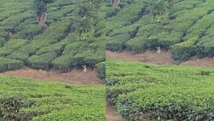പാടഗിരിയിലെ തോട്ടത്തിൽ തേയില ചെടികൾക്കിടയിലൂടെ പുലി നടന്ന് നീങ്ങുകയായിരുന്നു. ഇന്നലെ വൈകീട്ട് നാട്ടുകാരാണ് പുലിയെ കണ്ടത്