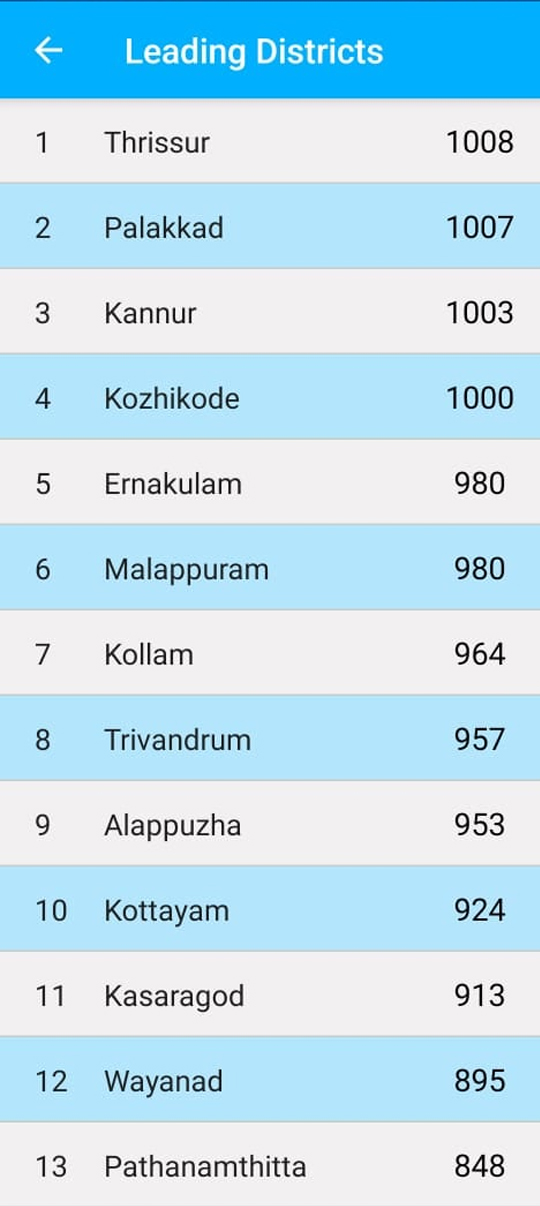 ജില്ല തിരിച്ചുള്ള പോയിന്റ് നില: