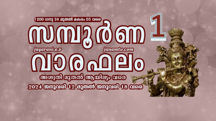ഈ വാരം ഗുണദോഷ സമ്മിശ്രമായിരിക്കും. അനാവശ്യ കൂട്ടുകെട്ടുകൾ മൂലം മാനഹാനി, ധനനഷ്ടം എന്നിവ ഉണ്ടാകുവാൻ ഇടയുണ്ട്. അന്യസ്ത്രീ ബന്ധം ശക്തമാകുകയും അത് ജീവിത പങ്കാളിയുമായി അസ്വാരസ്യം ഉണ്ടാവാനും പരസ്പരം അകൽച്ച ഉണ്ടാവാനും ഇടനൽക്കും. വാരം മധ്യത്തോടു കൂടി ആരോഗ്യ വർദ്ധനവ്, പ്രിയപെട്ടവരുമായി പുണ്യ തീർത്ഥ സ്ഥലങ്ങളിലോ ഉല്ലാസയാത്ര പോകാനോ അവസരം ലഭിക്കും. ഭക്ഷണ സുഖം, നിദ്രാസുഖം എന്നിവ ലഭിക്കും. ലോട്ടറി, നറുക്കെടുപ്പ് എന്നിവയിൽ വിജയിക്കുകയോ വിലപ്പെട്ട സമ്മാനങ്ങൾ ലഭിക്കുകയോ ചെയ്യും.