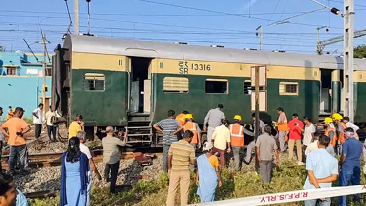 പുലർച്ചെ 5.25-ന് വില്ലുപുരത്തു നിന്ന് പുറപ്പെട്ട മെമു (മെയിൻലൈൻ ഇലക്ട്രിക് മൾട്ടിപ്പിൾ യൂണിറ്റ്) ട്രെയിനാണ് ഒരു വളവ് കടക്കുന്നതിനിടെ പാളം തെറ്റിയത്. ഉയർന്ന ശബ്ദം കേട്ട് ലോക്കോ പൈലറ്റ് ട്രെയിൻ ഉടൻ നിർത്തിയതിനാലാണ് വൻ അപകടം ഒഴിവായത്. ട്രെയിൻ എടുത്തതിന് പിന്നാലെയാണ് ശബ്ദം കേട്ടത്. എല്ലാ യാത്രക്കാരും സുരക്ഷിതരാണെന്ന് റെയിൽവേ അറിയിച്ചു.
