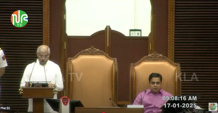 തിരുവനന്തപുരം : പതിനഞ്ചാം കേരളം നിയമസഭയുടെ പതിമൂന്നാം സമ്മേളനം തുടങ്ങി. ഗവർണർ രാജേന്ദ്ര വിശ്വനാഥ് അർലേക്കർ ചുമതല ഏറെറടുത്ത ശേഷമുള്ള ആദ്യ നയപ്രഖ്യാപന പ്രസംഗം നടത്തി. ആദ്യമായി കേരള നിയമസഭയിലെത്തിയ ഗവർണറെ മുഖ്യമന്ത്രിയും സ്പീക്കറും പാർലമെന്ററികാര്യ മന്ത്രിയും ചേർന്നു സ്വീകരിച്ചു.