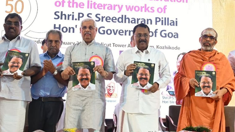 കോഴിക്കോട്: ഗോവ ഗവർണർ പി.എസ് ശ്രീധരൻപിള്ളയുടെ എഴുത്തിന്റെ സുവർണ ജൂബിലിക്ക് ആദരം അർപ്പിച്ച് സാഹിത്യ നഗരം. കോഴിക്കോട് നടന്ന സുവർണ ജൂബിലി ആഘോഷം ഗവർണർ രാജേന്ദ്ര വിശ്വനാഥ് അർലേക്കർ ഉദ്ഘാടനം ചെയ്തു. രാഷ്ട്രീയ സാംസ്കാരിക രംഗത്തെ നിരവധി പ്രമുഖർ ചടങ്ങിൽ പങ്കെടുത്തു. ഇൻഡോ അറബ് കോൺഫഡറേഷൻ കൗൺസിലാണ് പരിപാടി സംഘടിപ്പിച്ചത്.