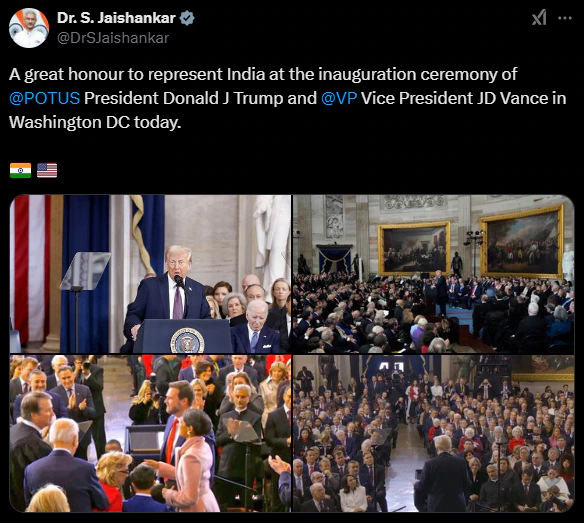ക്യാപിറ്റൽ റൊട്ടുണ്ടയിൽ നടന്ന ചടങ്ങിൽ എസ്. ജയശങ്കർ മുൻനിരയിൽ ഇരുന്നപ്പോൾ, ജാപ്പനീസ് വിദേശകാര്യ മന്ത്രി തകേഷി ഇവായക്ക് രണ്ടുവരി പിറകിലായിരുന്നു സ്ഥാനം ലഭിച്ചത്. 47-ാമത് യുഎസ് പ്രസിഡൻ്റായി അധികാരമേറ്റ ട്രംപിനായി നരേന്ദ്രമോദി കൊടുത്തുവിട്ട കത്ത് ജയശങ്കർ കൈമാറി. ട്രംപിന്റെ സത്യപ്രതിജ്ഞാ ചടങ്ങിൽ ഇന്ത്യയെ പ്രതിനിധീകരിക്കാൻ കഴിഞ്ഞത് സവിശേഷമായി കരുതുന്നുവെന്നും എസ്. ജയശങ്കർ എക്സിൽ കുറിച്ചു. വാഷിംഗ്ടൺ ഡിസിയിൽ നടന്ന സത്യപ്രതിജ്ഞാ ചടങ്ങിൽ ഇന്ത്യയുടെ വിദേശകാര്യ മന്ത്രിയെന്ന നിലയിലും പ്രധാനമന്ത്രി മോദിയുടെ പ്രത്യേക ദൂതനായും പ്രതിനിധീകരിക്കാൻ അവസരം ലഭിച്ചത് വലിയൊരു അംഗീകാരമാണെന്നും അദ്ദേഹം എക്സിൽ എഴുതി.