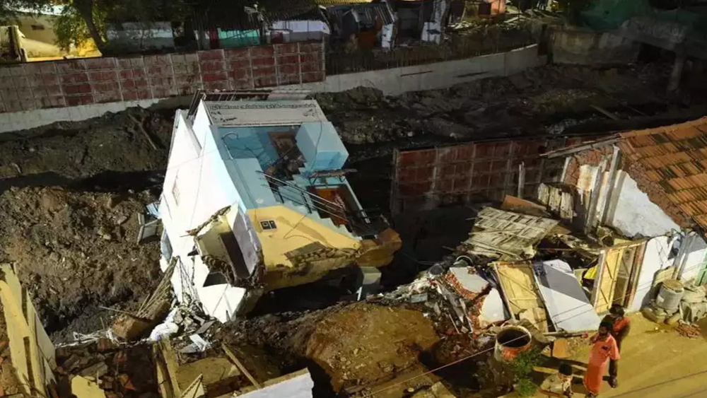 ചെന്നൈ: നിർമാണത്തിലിരുന്ന വീട് തകർന്നുവീണു. കോയമ്പത്തൂരിലെ രത്തിനപുരിയിലാണ് സംഭവം. കെട്ടിടത്തിന് സമീപത്ത് സ്ഥിതിചെയ്യുന്ന നദീതടത്തിൽ ഡ്രഡ്ജിംഗ് പ്രവർത്തനങ്ങൾ നടക്കുന്നതിനിടെയാണ് സംഭവമുണ്ടായത്. കെട്ടിടം നിലംപൊത്തുന്നതിന്റെ സിസിടിവി ദൃശ്യങ്ങൾ പുറത്തുവന്നിട്ടുണ്ട്.