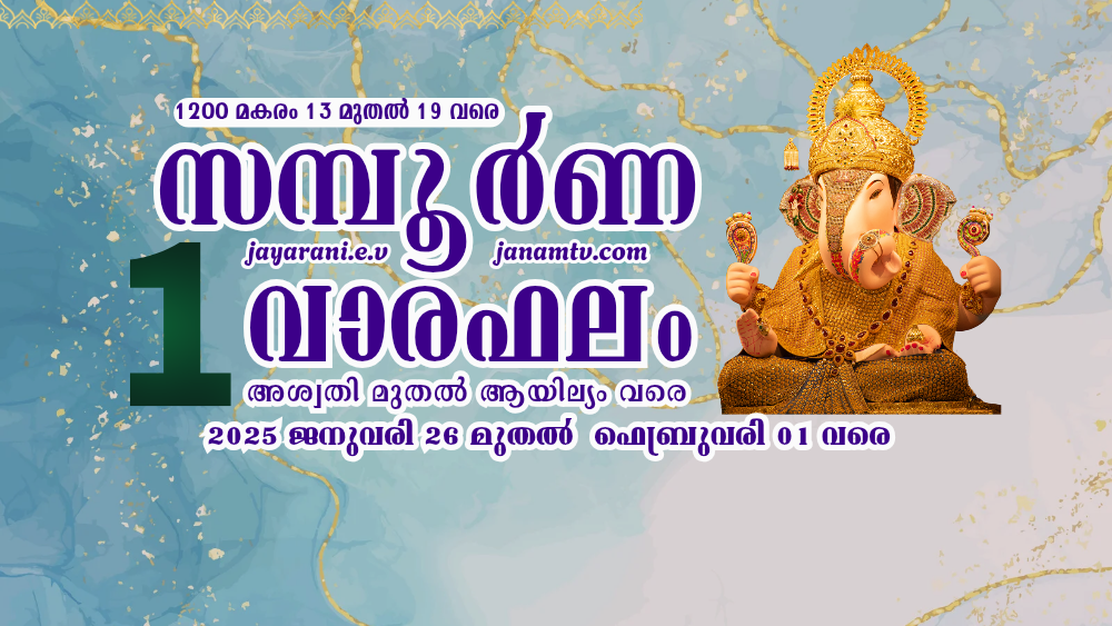 സമ്പൂർണ്ണ വാരഫലം: അശ്വതി മുതൽ ആയില്യം വരെയുള്ള നക്ഷത്രങ്ങളുടെ 2025 ജനുവരി 26 മുതൽ ഫെബ്രുവരി 01 വരെയുള്ള (1200 മകരം 13 മുതൽ 19 വരെ) ചന്ദ്രരാശി പൊതുഫലം