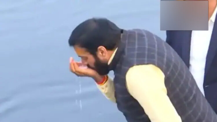 बेहिचक और बेझिझक पवित्र यमुना के जल का आचमन किया हरियाणा की सीमा पर।