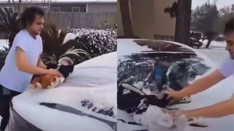 തെക്കുകിഴക്കൻ ടെക്സാസിൽ ആഞ്ഞടിച്ച ശീതകാല കൊടുങ്കാറ്റിനിടെ ഷൂട്ട് ചെയ്താണ് വീഡിയോ. ഹ്യൂണ്ടായ് എലാൻട്ര കാറിന്റെ മുകളിൽ നിന്നും രണ്ടിഞ്ചിലധികം വരുന്ന മഞ്ഞ് നീക്കം ചെയ്യുന്ന ദൃശ്യങ്ങൾ നെറ്റിസൺസിൽ വലിയ ഞെട്ടലാണുണ്ടാക്കിയത്. കുഞ്ഞിന്റെ ജാക്കറ്റിൽ പിടിച്ച് വളരെ ലാഘവത്തോടെ തലങ്ങും വിലങ്ങും മഞ്ഞ് നീക്കുകയാണ് യുവാവ്. വീഡിയോ നെറ്റിസൺസിൽ കടുത്ത അസ്വസ്ഥതയാണ് ഉണ്ടാക്കിയത്. ആദ്യം