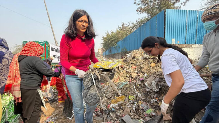 പ്രദേശവാസികളോടൊപ്പം വികാസ്പുരി ഏരിയയിലെ കേജരിവാളിന്റെ വസതിക്ക് മുൻപിലെത്തിയ മാലിവാൾ മാലിന്യവണ്ടിയിൽ നിന്ന് ചപ്പും ചവറുകളും കോരിയെടുത്ത് റോഡിലിട്ടു. ഡൽഹിയിലെ ഓരോ കോണിലും മാലിന്യങ്ങളാണെന്നും എന്തിനാണ് ജനങ്ങൾക്ക് ഇത്തരമൊരു ‘സമ്മാനം’ നൽകിയതെന്നും ആംആദ്മി കൺവീനറോട് സ്വാതി ചോദിച്ചു. ഡൽഹിയുടെ പ്രശ്നങ്ങളറിഞ്ഞ് അതിന് വേണ്ട നടപടികൾ കൈക്കൊള്ളാൻ കേജരിവാൾ തയ്യാറാകുന്നില്ല. ഡൽഹിയുടെ ഓരോ മുക്കിലും മൂലയിലും മാലിന്യമാണ്, റോഡുകൾ പൊളിഞ്ഞുകിടക്കുകയാണ്, അഴുക്കുചാലുകൾ നിറഞ്ഞ് കവിഞ്ഞൊഴുകയാണെന്നും മാലിവാൾ പറഞ്ഞു. ഈ പ്രതിഷേധം ഏതെങ്കിലുമൊരു പാർട്ടിക്കെതിരെയല്ല, മറിച്ച് ഡൽഹിക്ക് വേണ്ടിയാണെന്നും സ്വാതി കൂട്ടിച്ചേർത്തു.