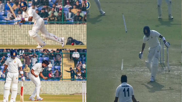 12 വർഷത്തിന് ശേഷം രഞ്ജി കളിക്കാനെത്തിയ വിരാട് കോലിയെ റെയിൽവേസ് താരം ഹിമാന്‍ഷു സംഗ്വാനെന്ന പേസറാണ് പുറത്താക്കിയത്. വെറിതെ പുറത്താക്കിയതല്ല, താരത്തിന്റെ ഇൻസ്വിം​ഗറിൽ വിരാടിന്റെ കുറ്റി തെറിക്കുകയായിരുന്നു. ആഭ്യന്തര ക്രിക്കറ്റിലേക്കുള്ള മടങ്ങി വരവിൽ കോലിക്ക് നേടാനായത് ആറ് റൺസ് മാത്രമായിരുന്നു.