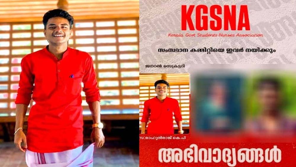 സംസ്ഥാന സെക്രട്ടറിയായിരുന്ന രാഹുല്രാജിനെ കഴിഞ്ഞ ഡിസംബറിലാണ് സംസ്ഥാന കമ്മിറ്റിയുടെ ജനറല് സെക്രട്ടറിയായി തെരഞ്ഞെടുത്തത്. ഇതിന്റെ പോസ്റ്റർ പ്രതി ഫേസ്ബുക്കിൽ പങ്കുവെച്ചിട്ടുണ്ട്. സംഘടനയുമായി ബന്ധപ്പെട്ട് നിരവധി പോസ്റ്റുകളും പോസ്റ്ററുകളും ഫേസ്ബുക്കിലുണ്ട്. നഴ്സിംഗ് വിദ്യാർത്ഥി സംഘടനയുടെ സംസ്ഥാന കലോത്സവത്തിൽ ലളിത ഗാനത്തിന് ഒന്നാം സമ്മാനം സ്വീകരിക്കുന്ന ചിത്രവും പ്രതിയുടെ പ്രൊഫൈലിൽ ഉണ്ട്.