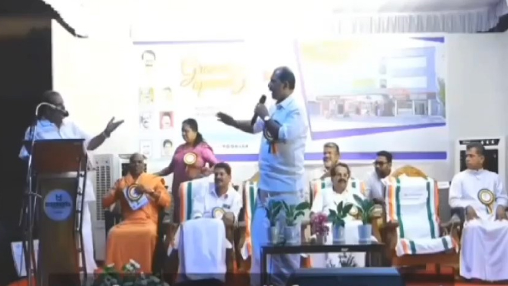 കേന്ദ്രമന്ത്രി ജോര്‍ജ് കുര്യന്‍ വേദിയിലിരിക്കെയാണ് ഇരുവരും തമ്മില്‍ കൊമ്പുകോര്‍ത്തത്. മുണ്ടക്കയത്ത് ആശുപത്രിയില്‍ ഡോക്ടറെ അനുവദിക്കണമെന്നാവശ്യപ്പെട്ട് സെബാസ്റ്റ്യന്‍ കുളത്തുങ്കല്‍ മന്ത്രിയെ കണ്ടതുമായി ബന്ധപ്പെട്ട് ജോര്‍ജ് പറഞ്ഞു. ആശുപത്രിയില്‍ ഡോക്ടറെ അനുവദിക്കണമെന്ന് ആവശ്യപ്പെട്ട് നിവേദനം കൊടുത്ത വാര്‍ത്ത പത്രങ്ങളില്‍ കണ്ടപ്പോള്‍ വിഷമംതോന്നി എന്ന് പി.സി.ജോര്‍ജ് പറഞ്ഞപ്പോള്‍ ഇവിടെ ആവശ്യമുള്ള കാര്യം പറഞ്ഞാല്‍ മതിയെന്ന് എം.എല്‍.എ. പറഞ്ഞു.