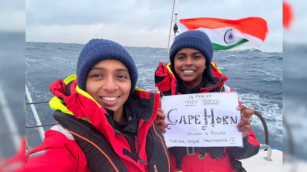 In persistent rains, Sea State 5, winds of 40kns (~75 kmph) and waves more than 5 metres, Lt Cdr Dilna K & Lt Cdr Roopa A, recorded their names in the annals of history by successfully crossing the #CapeHorn located at the southern tip of #SouthAmerica, while sailing on the third… pic.twitter.com/N1isyvHGMA