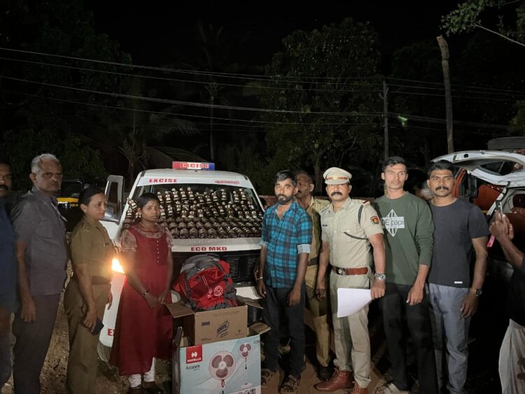 മണ്ണാര്ക്കാട് എക്സൈസ് സര്ക്കിള് ഇന്സ്പെക്ടര് ബി വിഷ്ണുവിന്റെ നേതൃത്വത്തിലുള്ള എക്സൈസ് സംഘമാണ് ഇവരെ അറസ്റ്റ് ചെയ്തത്. കാഞ്ഞിരം പള്ളിപടിയില് വച്ച് ഇവര് സഞ്ചരിച്ചിരുന്ന കാറില് നിന്നാണ് വിദേശ മദ്യം പിടിച്ചത്.