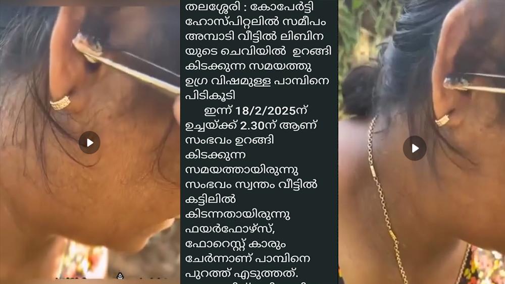 സ്ഥലവും തീയതിയും വീട്ടുപേരും അടക്കമുളള കുറിപ്പും ദൃശ്യങ്ങൾക്കൊപ്പമുണ്ട്. ഒപ്പം വനം വകുപ്പിന്റെയും ഫയർ ഫോഴ്സിന്റെയും എന്ന തരത്തിലുള്ള നിർദ്ദേശങ്ങളും ചേർത്തിട്ടുണ്ട്. എന്നാൽ ഇത് വീഡിയോ വ്യാജമാണെന്നും ഇത്രയും വലിയ പാമ്പിന് മനുഷ്യന്റെ ചെവിയിൽ കടന്നു കൂടാൻ സാധിക്കില്ലെന്നും സ്നേക്ക് റെസ്ക്യൂവറും സർപ്പാ വളണ്ടിയറുമായ ബിജിലേഷ് കോടിയേരി പറഞ്ഞു.