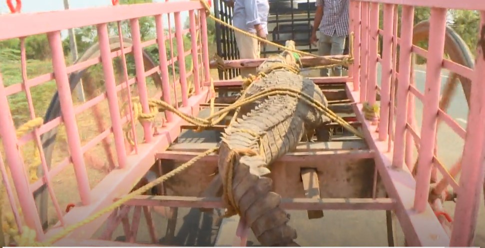 സ്ഥലത്തെത്തിയ പൊലീസുകാർ മുതലയെ വനം വകുപ്പിന് കൈമാറാൻ കർഷകരെ പ്രേരിപ്പിച്ചു. ഏകദേശം പത്ത് വയസ്സ് പ്രായം തോന്നിക്കുന്ന മുതലയെ പിന്നീട് കലബുറഗിയിലെ മിനി മൃഗശാലയിലേക്ക് മാറ്റി. മുതല ആരോഗ്യവാനാണെന്നും ഒരു ദോഷവും സംഭവിച്ചിട്ടില്ലെന്നും ഡിവിഷണൽ ഫോറസ്റ്റ് ഓഫീസർ സഞ്ജീവ് കുമാർ ചവാൻ മാദ്ധ്യമങ്ങളോട് സ്ഥിരീകരിച്ചു.