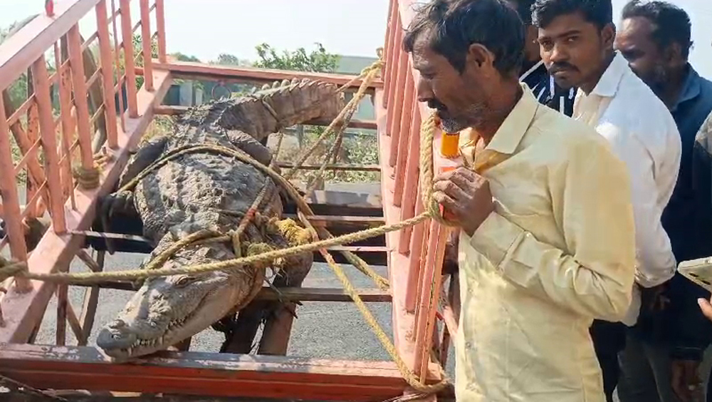 അതിനിടെയാണ് ലക്ഷ്മൺ പൂജാരി കൃഷിയിടം നനയ്ക്കാൻ പോയപ്പോൾ മുതല ആക്രമിച്ചത്. ഇതിൽ കുപിതനായ ലക്ഷ്മൺ ചുറ്റുമുള്ള കർഷകരെ ഇക്കാര്യം അറിയിച്ചു. സ്ഥലത്തെത്തിയ കർഷകർ ചേർന്ന് മുതലയെ ജീവനോടെ പിടികൂടി. തങ്ങളുടെ ദുരവസ്ഥ വ്യക്തമാക്കാൻ, മുതലയെ ഒരു കയറുകൊണ്ട് കെട്ടി ഒരു കാളവണ്ടിയിൽ ജെസ്കോം ഓഫീസിലേക്ക് കൊണ്ടുപോയി.അവിടെ അവർ പ്രതിഷേധ പ്രകടനം നടത്തി.
