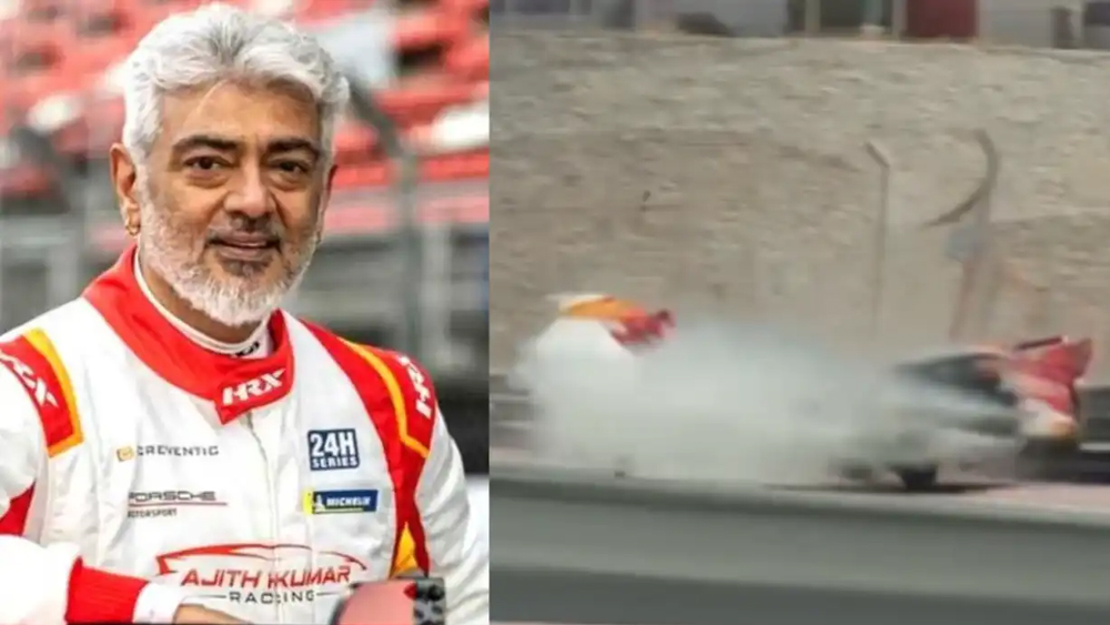 #Ajith was involved in an accident while racing, but reports confirm that he is safe, with only minor injuries. Defying all concerns, he walked away from the incident unscathed, reassuring fans with his resilience. pic.twitter.com/rgUzRtmWWh