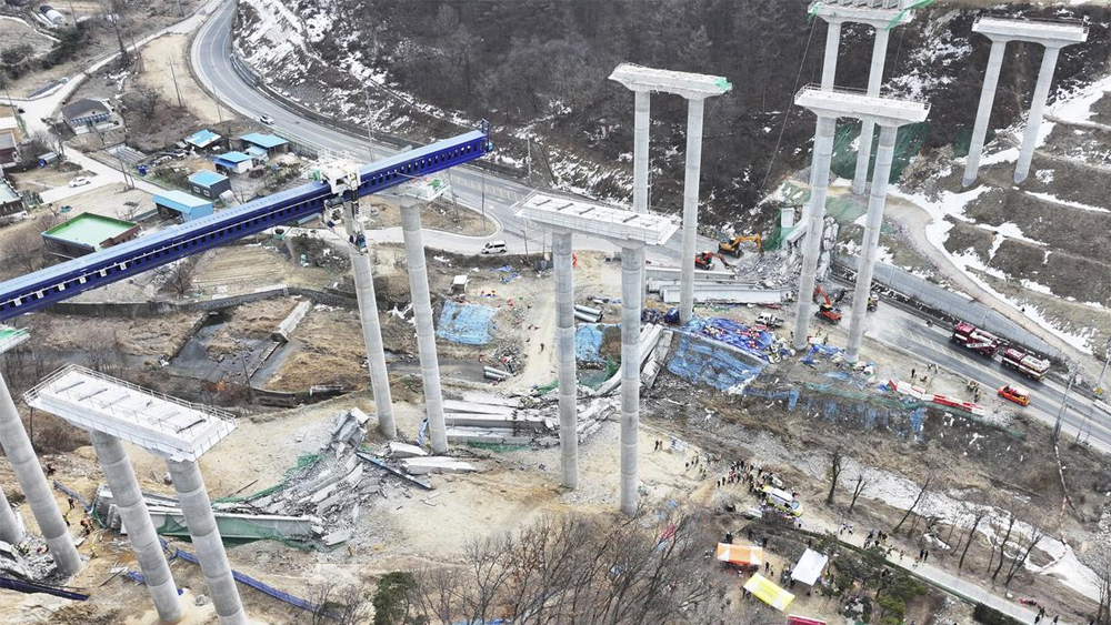 സിയോൾ: നിർമാണത്തിലിരിക്കുന്ന ഹൈവേ പാലം തകർന്നുതരിപ്പണമായി. ദക്ഷിണ കൊറിയയിലെ ചിയോനൻ സിറ്റിയിൽ ചൊവ്വാഴ്ചയാണ് അതിദാരുണമായ അപകടം നടന്നത്. രണ്ട് പേർ മരിക്കുകയും അഞ്ച് പേർക്ക് പരിക്കേറ്റതായുമാണ് വിവരം. മരിച്ച രണ്ടുപേരും നിർമാണ തൊഴിലാളികളാണ്.