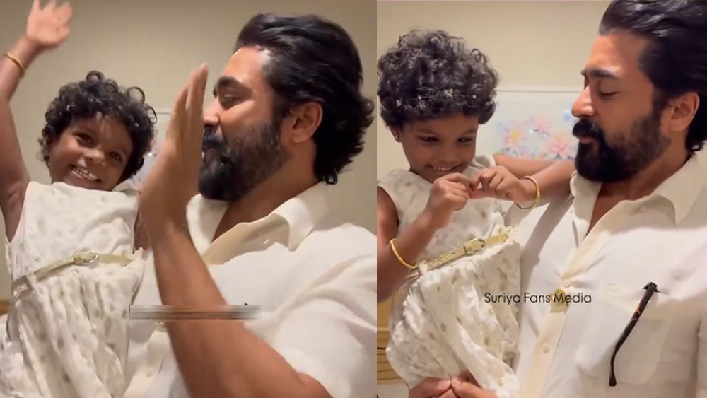 കുഞ്ഞിന്റെ അമ്മയാണ് വീഡിയോ പകർത്തിയത്. ഐ ലവ് യു എന്ന് സൂര്യയോട് പറയാൻ അമ്മ കുട്ടിയോട് ആവശ്യപ്പെടുന്നതും വീഡിയോയിൽ കാണാം. ചിരിച്ചുകൊണ്ട് സൂര്യയെ തന്നെ നോക്കി താരത്തിന്റെ കയ്യിലിരിക്കുകയാണ് കുട്ടി. ഒടുവിൽ ഐ ലവ് യു ഡിയറെന്നും ദൈവം നിന്നെ അനുഗ്രഹിക്കട്ടെയെന്നും സൂര്യ പറഞ്ഞു. വീഡിയോ പുറത്തെത്തിയതിന് പിന്നാലെ നിമിഷങ്ങൾക്കകം വീഡിയോ സമൂഹമാദ്ധ്യമങ്ങളിൽ വൈറലായി. തിരക്കുകൾക്കിടയിലും ആ കൊച്ചുകുഞ്ഞിന് വേണ്ടി സമയം മാറ്റിവച്ച താരത്തെ പ്രശംസിക്കുകയാണ് ആരാധകർ.