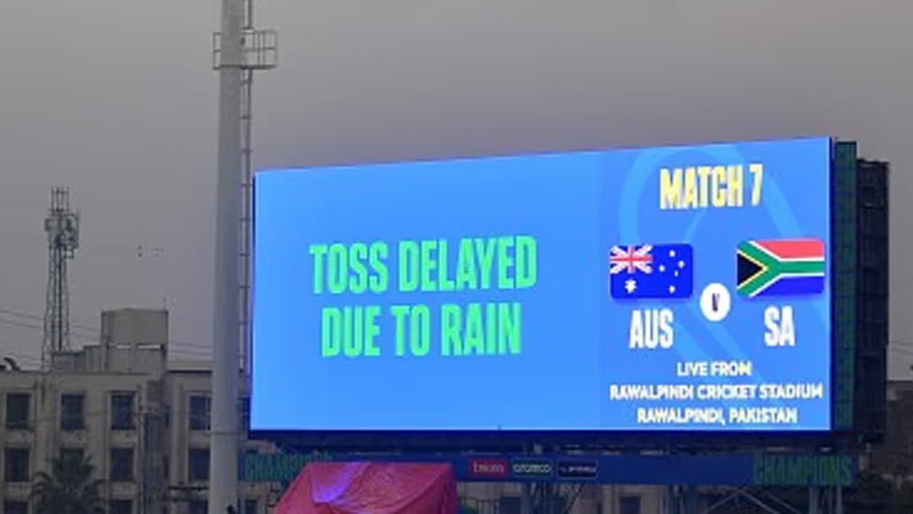 ചാമ്പ്യൻസ് ട്രോഫിയിൽ ഏവരും കാത്തിരുന്ന ഓസ്ട്രേലിയ ദക്ഷിണാഫ്രിക്ക മത്സരം കനത്ത മഴയെ തുടർന്ന് ഉപേക്ഷിച്ചു. റാവൽപിണ്ടി സ്റ്റേഡിയത്തിലായിരുന്നു മത്സരം നടത്താൻ നിശ്ചയിച്ചത്. ഗ്രൂപ്പ് ബിയിൽ ഇരുവരും നേർക്കുനേർ വരുന്ന ആദ്യ മത്സരമായിരുന്നു ഇത്. ഇരു ടീമുകളും ഓരോ മത്സരം വീതം വിജയിച്ചിട്ടുണ്ട്. ഇരുവർക്കും മൂന്ന് പോയിന്റാണ് നിലവിൽ +2.140 ആണ് പ്രോട്ടീസിന്റെ റൺറേറ്റ്. ഓസ്ട്രേലിയക്ക് +0.475 ഉം