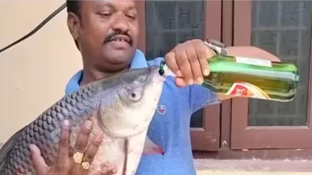 ഒരാൾ ഒരു മത്സ്യത്തിന്റെ വായിലേക്ക് ബിയർ ഒഴിച്ചു കൊടുക്കുന്ന ദൃശ്യങ്ങളാണ് വീഡിയോ. ഇന്ത്യൻ റെയർ ക്ലിപ്സ് എന്ന ഇൻസ്റ്റാഗ്രാം പേജിൽ പങ്കുവച്ച വീഡിയോയിലാണ് യുവാവിന്റെ വിചിത്രമായ ചെയ്തി. ഒരു രോഹു മത്സ്യത്തെ ഒരു കൈയിൽ പിടിച്ചുകൊണ്ട് മറു കൈകൊണ്ട് മത്സ്യത്തിന്റെ വായിൽ ബിയർ ഒഴിച്ചുനൽകുന്നതാണ് വീഡിയോ. മത്സ്യം ഇത് കുടിക്കുന്നതും കാണാം.