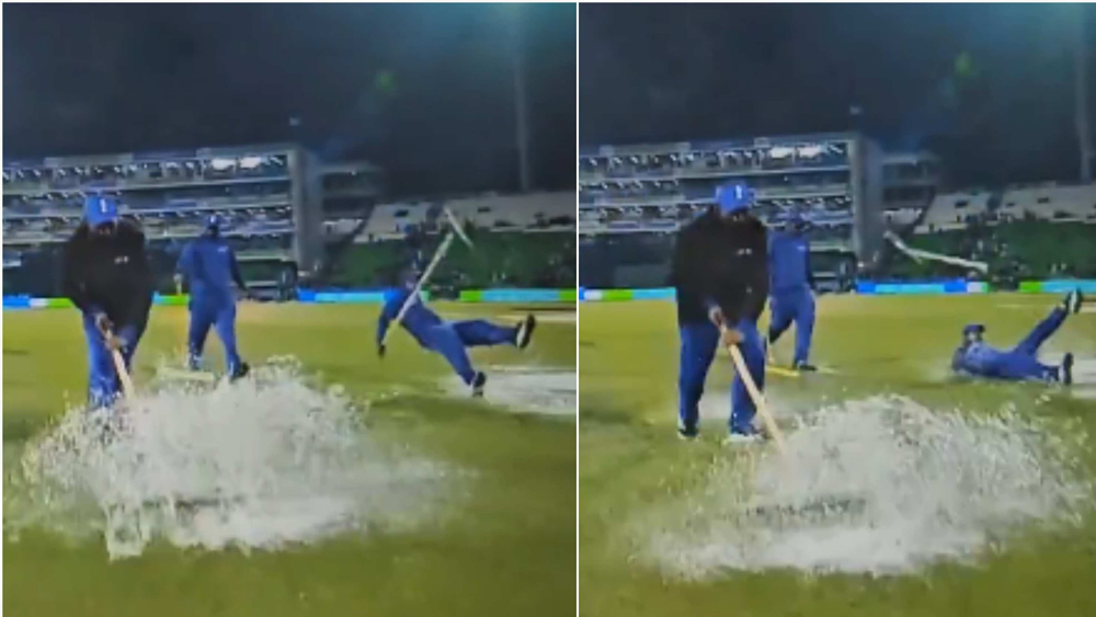 വെള്ളമൊഴുകുന്ന അമ്യൂസ്മെന്റ് പാർക്കല്ല, ഇത് ലാഹോർ സ്റ്റേഡിയം; തലതല്ലി വീണ് ​ഗ്രൗണ്ട് സ്റ്റാഫ്
