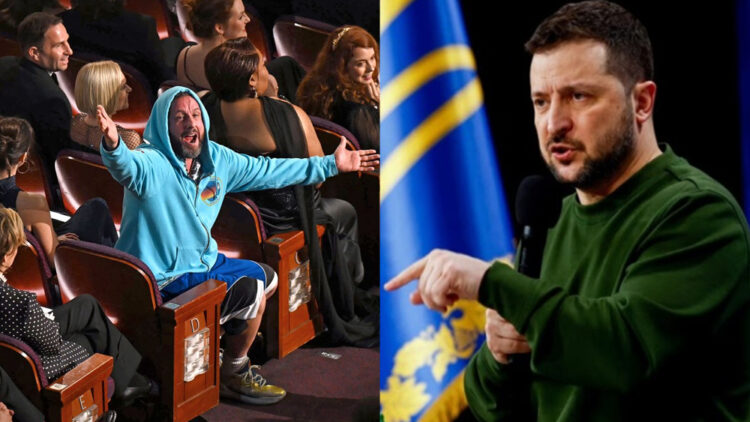 ലോസ്ഏഞ്ചൽസ്: 97-ാം ഓസ്കർ പ്രഖ്യാപനവും പുരസ്കാര ജേതാക്കളുടെയും വിശേഷങ്ങളായിരുന്നു കഴിഞ്ഞ ദിവസം ലോകം ഏറ്റവുമധികം ചർച്ച ചെയ്തത്. ലോസ്ഏഞ്ചൽസിൽ നടന്ന ഓസ്കർ പ്രഖ്യാപനം ശ്രദ്ധാബിന്ദു ആകുമ്പോൾ ഓസ്കർ വേദിയിലെത്തിയ അമേരിക്കൻ ഹാസ്യനടൻ ആഡം സാൻഡ്ലറും ചർച്ചയാവുകയാണ്. യുക്രെയ്ൻ പ്രസിഡന്റ് വ്ലോദിമർ സെലൻസ്കിയുടെ വേഷത്തിൽ ഒരു സാധാരണ ഹുഡ്ഡി ധരിച്ചാണ് സാൻഡലർ എത്തിയത്.