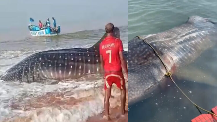 രണ്ടായിരം കിലോയോളം വരുമെന്നാണ് കരുതുന്നത്. വല മുറിച്ച് സ്രാവിനെ കടലിലേക്ക് ഒഴുക്കിവിടാൻ ശ്രമിച്ചെങ്കിലും തിരികെ കരയ്ക്കടിയുകയായിരുന്നു. വൈല്സ് ലൈഫ് ട്രസ്റ്റ് ഓഫ് ഇന്ത്യ പ്രവര്ത്തകരും മത്സ്യതൊഴിലാളികളും സ്രാവിനെ കടലിലേയ്ക്ക് വിടാനുള്ള ശ്രമം തുടരുകയാണ്.