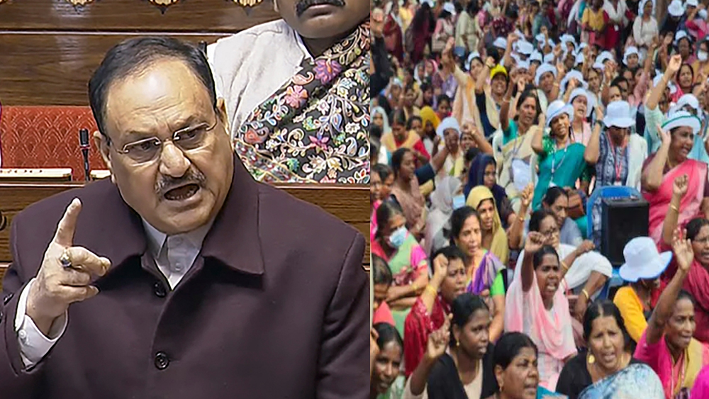 ന്യൂഡൽഹി: ആശാ വർക്കർമാരുടെ വേതനം വർദ്ധിപ്പിക്കുമെന്ന സുപ്രധാന പ്രഖ്യാപനം നടത്തി കേന്ദ്രമന്ത്രി ജെപി നദ്ദ. കേന്ദ്ര വിഹിതം കിട്ടിയിട്ടില്ലെന്ന കേരളത്തിന്റെ ആരോപണങ്ങൾ അടിസ്ഥാന രഹിതമാണെന്നും എല്ലാ കുടിശ്ശികയും നൽകിയിട്ടുണ്ടെന്നും അദ്ദേഹം പറഞ്ഞു. ബി സന്തോഷ് കുമാർ എംപി ആശമാരുടെ വിഷയം രാജ്യസഭയിൽ ഉന്നയിച്ചതിന് പിന്നാലെയായിരുന്നു നദ്ദയുടെ മറുപടി.