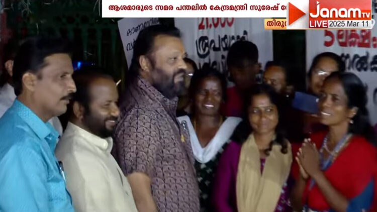 സർജിക്കൽ സ്ട്രൈക്ക് പ്രതീക്ഷിക്കണമെന്നും സുരേഷ് ഗോപി പറഞ്ഞു.എന്റെ നേതാവ് സർജിക്കൽ സ്ട്രൈക്കിന്റെ ആളാണ് അവിടെനിന്ന് അതു പ്രതീക്ഷിക്കണമെന്ന് സുരേഷ് ഗോപി.ആശമാരുടെ സമരപ്പന്തലിൽ എത്തിയാണ് സുരേഷ് ഗോപിയുടെ പ്രഖ്യാപനം. യൂട്ടിലൈസേഷന് സര്ട്ടിഫിക്കറ്റ് നേരത്തെ കേന്ദ്രത്തിന് അയച്ചു കൊടുത്തിരുന്നുവെന്നായിരുന്നു ആരോഗ്യമന്ത്രി വീണാ ജോർജിന്റെ വാദം. 2025 ഫെബ്രുവരി വരെയുള്ള ഫിനാന്ഷ്യല് മോണിറ്ററിംഗ് റിപ്പോര്ട്ടുകളും ഇതിനോടകം അയച്ചു കൊടുത്തിട്ടുണ്ട്. ഈ റിപ്പോര്ട്ട് കേന്ദ്രത്തിന് ലഭ്യമാക്കുമ്പോഴാണ് അടുത്ത ഗഡു ഫണ്ട് അനുവദിക്കുകയെന്നായിരുന്നു അവരുടെ വിശദീകരണം.