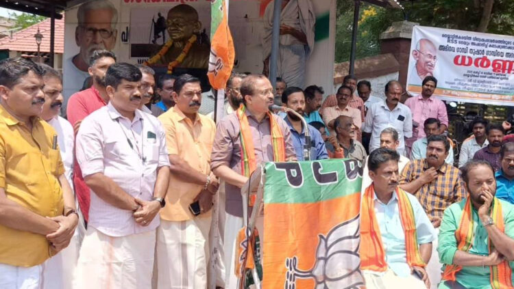 വിദേഷ്വ പരാമർശം നടത്തിയ തുഷാർ ഗാന്ധിയെ അറസ്റ്റ് ചെയ്യണമെന്ന് ആവശ്യപ്പെട്ട് ബിജെപി തിരുവനന്തപുരം സൗത്ത് ജില്ലയുടെ നേതൃത്വത്തിൽ നെയ്യാറ്റിൻകരയിൽ നടന്ന ധർണ ഉദ്ഘാടനം ചെയ്തു സംസാരിക്കുന്നു വി. മുരളീധരൻ.