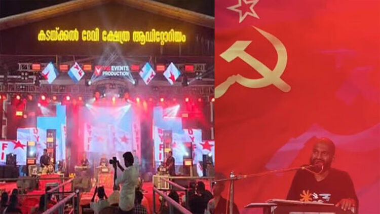 പരിപാടി സംഘടിപ്പിച്ചത് ക്ഷേത്ര ഉപദേശക സമിതിയെന്ന ദേവസ്വം ബോർഡിന്റെ നിലപാടിൽ ഹൈക്കോടതിക്ക് അതൃപ്തി രേഖപ്പെടുത്തി. ഒരാഴ്ചക്കകം സത്യവാങ്മൂലം നൽകാൻ ദേവസ്വം ബോർഡിനോട് കോടതി ആവശ്യപ്പെട്ടു.