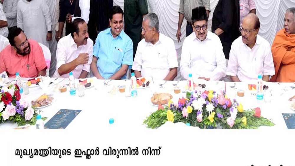 തിരുവനന്തപുരം: മുഖ്യമന്ത്രി പിണറായി വിജയൻ സംഘടിപ്പിച്ച ഇഫ്താർ വിരുന്നിൽ അതിഥികളായി പൗര പ്രമുഖരും സിനിമാതാരങ്ങളും. നിയമസഭ ശങ്കരനാരായണൻ തമ്പി ഹാളിലാണ് ഇഫ്താർ വിരുന്ന് സംഘടിപ്പിച്ചത്. മുഖ്യമന്ത്രി പിണറായി വിജയനും പത്നി കമലയും ചേർന്നു വിരുന്നിലേക്കു വിശിഷ്ടാതിഥികളെ സ്വീകരിച്ചു. നിയമസഭ സ്പീക്കർ എ എൻ ഷംസീർ, മന്ത്രിമാരായ കെ രാജൻ, കെ എൻ ബാലഗോപാൽ, പി രാജീവ്, എം ബി രാജേഷ്, പി പ്രസാദ്, വി അബ്ദുറഹിമാൻ, ജി.ആർ. അനിൽ, പി എ മുഹമ്മദ് റിയാസ്, റോഷി അഗസ്റ്റിൻ, കെ ബി ഗണേഷ് കുമാർ, രാമചന്ദ്രൻ കടന്നപ്പള്ളി, സജി ചെറിയാൻ, എ കെ ശശീന്ദ്രൻ, വി.എൻ. വാസവൻ, ഡോ. ആർ ബിന്ദു, പ്രതിപക്ഷ നേതാവ് വി.ഡി. സതീശൻ, മേയർ ആര്യാ രാജേന്ദ്രൻ, ചീഫ് സെക്രട്ടറി ശാരദാ മുരളീധരൻ, എം വി ഗോവിന്ദൻ , എം എം ഹസ്സൻ, പി.കെ. കുഞ്ഞാലിക്കുട്ടി, ബിനോയ് വിശ്വം, ഇ പി ജയരാജൻ, ഒ രാജഗോപാൽ, പാണക്കാട് സാദിഖലി ശിഹാബ് തങ്ങൾ തുടങ്ങി മത, സാമൂഹിക, വ്യവസായ, കായിക, ചലച്ചിത്ര രംഗങ്ങളിലെ പ്രമുഖർ, എം എൽ എ മാർ, സംസ്ഥാന സർക്കാരിലെ ഉന്നത ഉദ്യോഗസ്ഥർ, മാദ്ധ്യമ സ്ഥാപന മേധാവികൾ തുടങ്ങിയവർ പങ്കെടുത്തു.