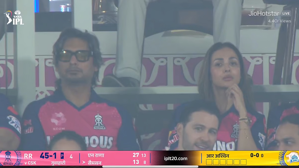 രാജസ്ഥാൻ റോയൽസ് -ചെന്നൈ സൂപ്പർകിങ്സ് മത്സരം കാണാനെത്തി ബോളിവുഡ് നടിയും മോഡലുമായ മലൈക അറോറ. രാജസ്ഥാന്റെ ജേഴ്സിയണിഞ്ഞ് ടീമിന്റെ ഡഗ് ഔട്ടിലിരിക്കുന്ന മലൈകയുടെ വീഡിയോ ആണ് സോഷ്യൽമീഡിയ ഏറ്റെടുത്തിരിക്കുന്നത്. ഗുവാഹത്തിയിലെ ബരാസ്പാര ക്രിക്കറ്റ് സ്റ്റേഡിയത്തിൽ നടന്ന മത്സരത്തിനിടെ രാജസ്ഥാൻ റോയൽസിന്റെ മുൻപരിശീലകൻ കുമാർ സംഗക്കാരയ്ക്കൊപ്പമിരിക്കുന്ന മലൈകയുടെ വീഡിയോ ആരാധകർക്കിടയിൽ നിരവധി ചർച്ചകൾക്കും അഭ്യൂഹങ്ങൾക്കും വഴിവച്ചിട്ടുണ്ട്.