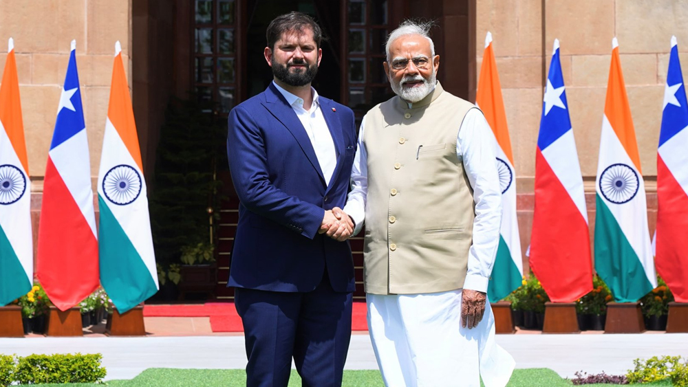 ന്യൂഡൽഹി: അഞ്ച് ദിവസത്തെ സന്ദർശനത്തിനായി ഇന്ത്യയിലെത്തിയ ചിലി പ്രസിഡന്റ് ഗബ്രിയൽ ബോറിക് ഫോണ്ടിനെ സ്വീകരിച്ച് പ്രധാനമന്ത്രി നരേന്ദ്രമോദി. ഡൽഹിയിലെ ഹൈദരാബാദ് ഹൗസിലാണ് ചിലി പ്രസിഡന്റ് എത്തിയത്. ഇന്ത്യ- ചിലി ഉഭയകക്ഷി ബന്ധം ശക്തമാക്കുന്നതിന്റെ ഭാഗമായി ഇരു നേതാക്കളും കൂടിക്കാഴ്ച നടത്തുമെന്ന് വിദേശകാര്യ മന്ത്രാലയം വക്താവ് രൺധീർ ജയ്സ്വാൾ അറിയിച്ചു.