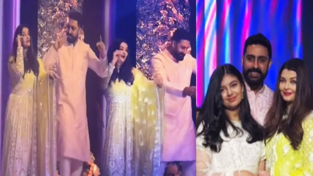ബോളിവുഡ് താരദമ്പതികളായ ഐശ്വര്യ റായിയും അഭിഷേക് ബച്ചനും മകൾ ആരാധ്യക്കൊപ്പം ചുവട് വയ്ക്കുന്ന വീഡിയോ വൈറലായി. ഐശ്വര്യയുടെ ബന്ധുവിന്റെ വിവാഹാഘോഷത്തിലാണ് ഇവർ കലക്കൻ ഡാൻസുമായി ആരാധക ഹൃദയം കീഴടക്കിയത്. കജ് രാരെ കജ് രാരെ എന്ന ഗാനത്തിനായിരുന്നു ഇരുവരും ഐക്കോണിക്കായ ഡാൻസ് സ്റ്റെപ്പുകൾ വീണ്ടും റീക്രിയേറ്റ് ചെയ്തത്.
