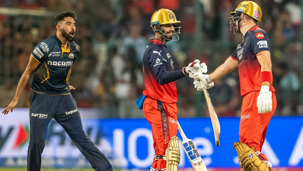 ആദ്യ ഹോം മത്സരത്തിൽ തകർന്നടിഞ്ഞ് റോയൽ ചലഞ്ചേഴ്സ് ബെംഗളൂരു. ഗുജറാത്ത് ടൈറ്റൻസിന്റെ ബൗളർമാരാണ് ആർ.സി.ബിയെ വരിഞ്ഞു മുറുക്കിയത്. നിശ്ചിത ഓവറിൽ ഏഴ് വിക്കറ്റ് നഷ്ടത്തിൽ നേടിയത് 169 റൺസ്. ടോസ് നേടിയ ഗുജറാത്ത് ആർ.സി.ബിയെ ബാറ്റിംഗിന് വിട്ടു. ഗില്ലിന്റെ തീരുമാനം ശരിയാണെന്ന് തെളിയാൻ അധികം താമസമുണ്ടായില്ല. രണ്ടാം ഓവറിൽ 7 റൺസുമായി കോലി കൂടാരം കയറി. പിന്നീട് പഴയ ടീമിനെതിരെ ആറാടാനുള്ള സിറാജിന്റെ സമയമായിരുന്നു. പടിക്കലിന്റെ കുറ്റി തെറിപ്പിച്ച് സിറാജ് ആദ്യ വെടി പെട്ടിച്ചു.