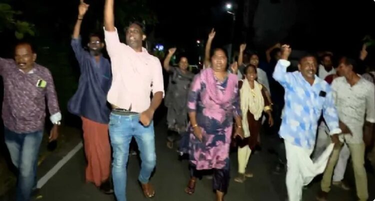 കൊച്ചി: വഖ്ഫ് ഭേദഗതി ബില്ലിന്മേല് ലോക്സഭയിൽ വോട്ടെടുപ്പ് പുരോഗമിക്കുന്നതിനിടെയും പാസായ ശേഷവും മുനമ്പത്ത് ജനങ്ങളുടെ ആഹ്ളാദ പ്രകടനം. സമരം നടത്തുന്നവർ കേന്ദ്രസര്ക്കാരിന് അഭിവാദ്യം അര്പ്പിച്ച്, നിരത്തില് ഇറങ്ങുകയും പടക്കം പൊട്ടിച്ച് ആഹ്ലാദ പ്രകടനം നടത്തുകയും ചെയ്തു. ബിജെപിക്ക് അനുകൂലമായും ഇവർ മുദ്രാവാക്യം മുഴക്കി.വഖ്ഫ് ഭേദഗതി ബില്ലിൽ ലോക്സഭയിൽ നടന്ന ചർച്ചകൾ മുനമ്പത്തെ സമരപന്തലിൽ സ്ഥാപിച്ച ടെലിവിഷനിൽ സമരക്കാർ ലൈവായി കണ്ടിരുന്നു.